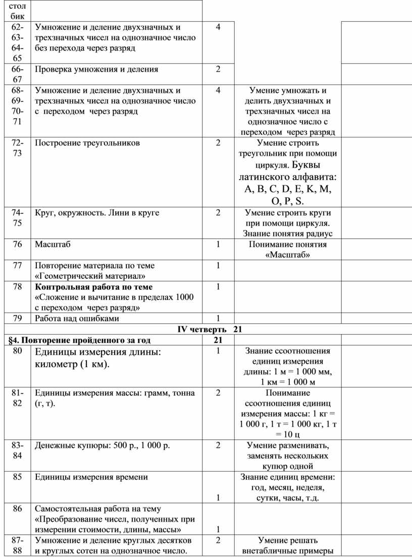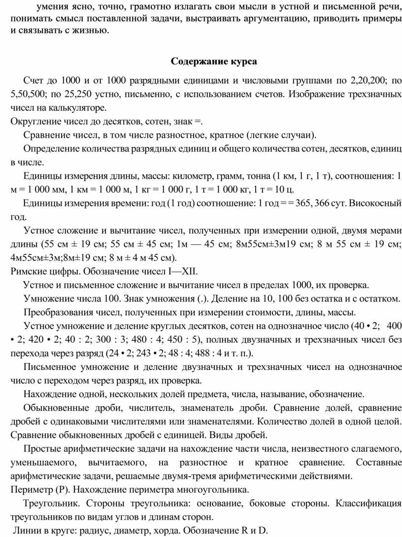 Общая характеристика курса математики в 4 классе