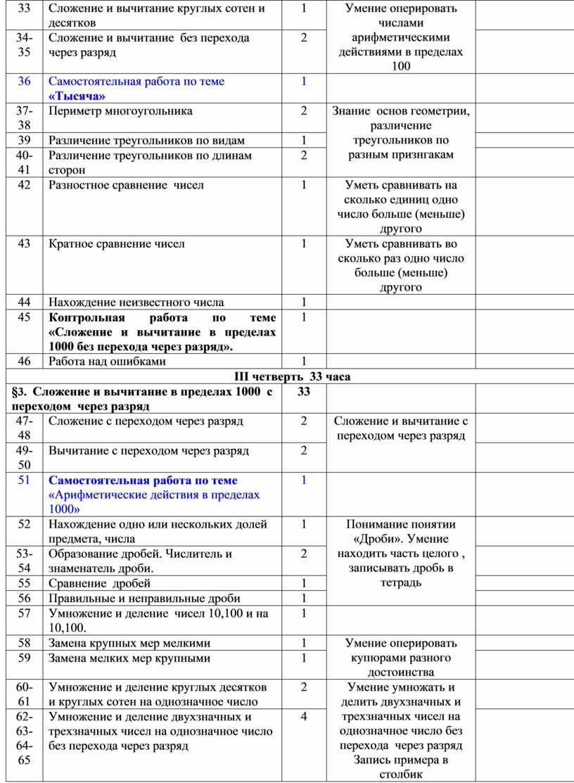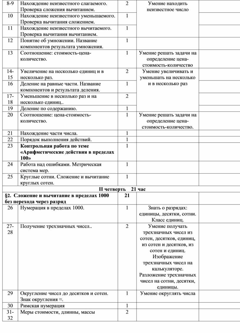 · выполнять устное (без перехода через разряд) и письменное сложение и вычитание чисел в пределах 1000 с последующей проверкой;