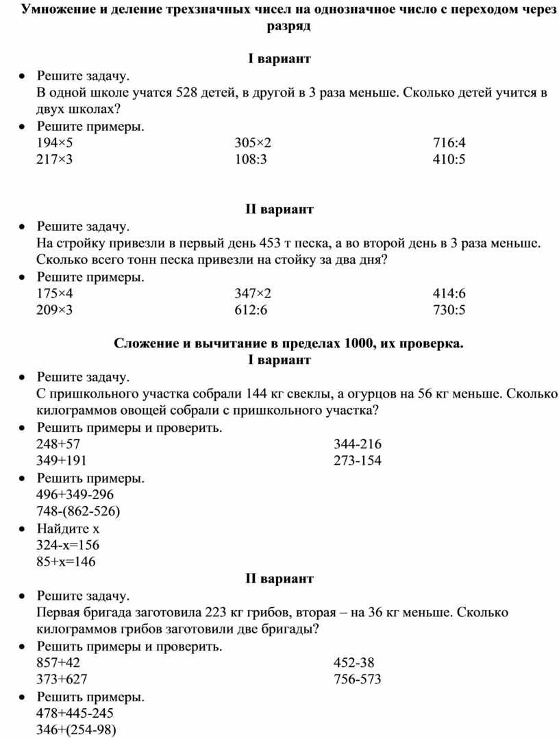 Умножение и деление трехзначных чисел на однозначное число с переходом через разряд
