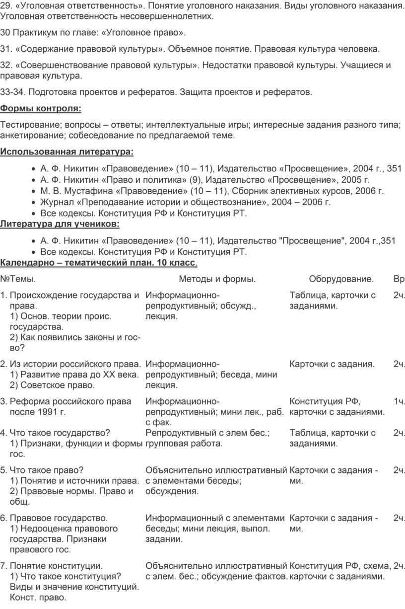 · А. Ф. Никитин «Правоведение» (10 – 11), Издательство "Просвещение", 2004 г.,351