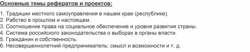 Основные темы рефератов и проектов: