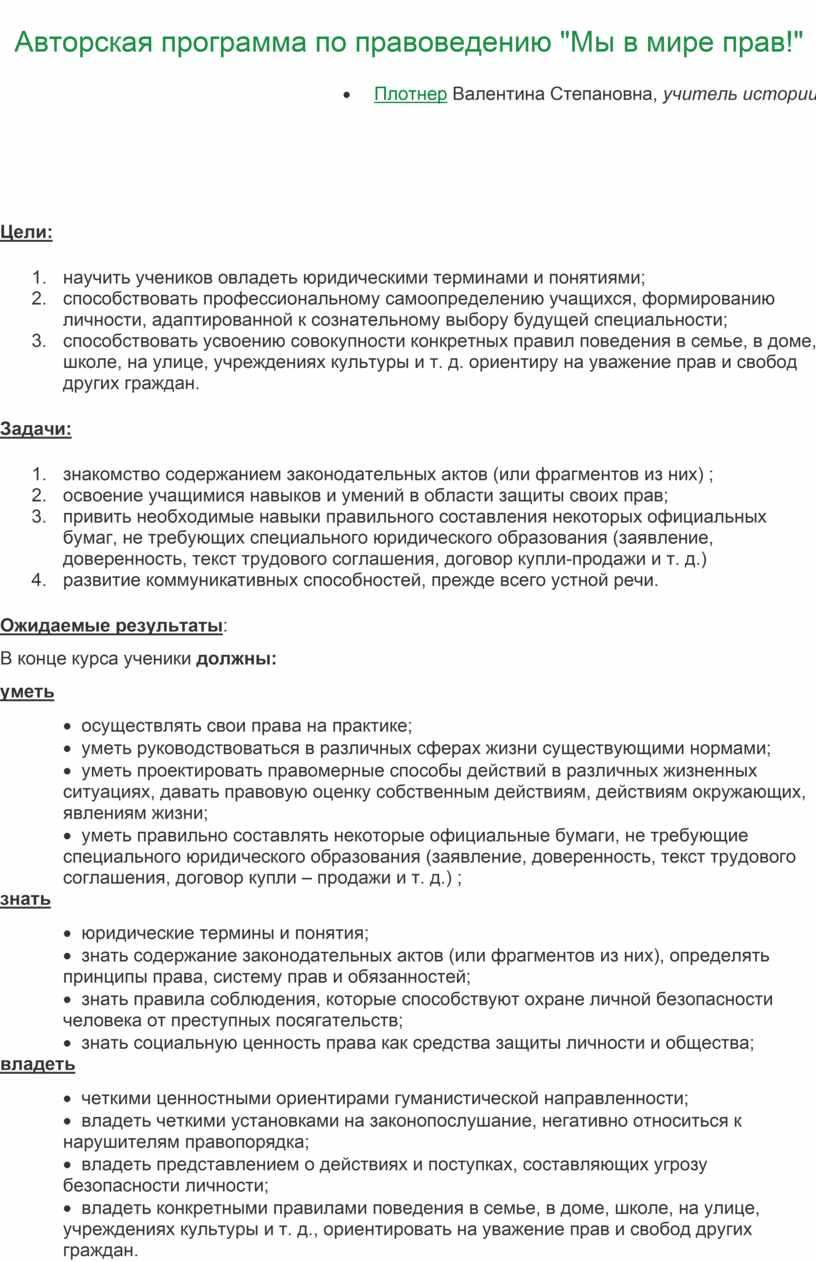 Авторская программа по правоведению "Мы в мире прав!"