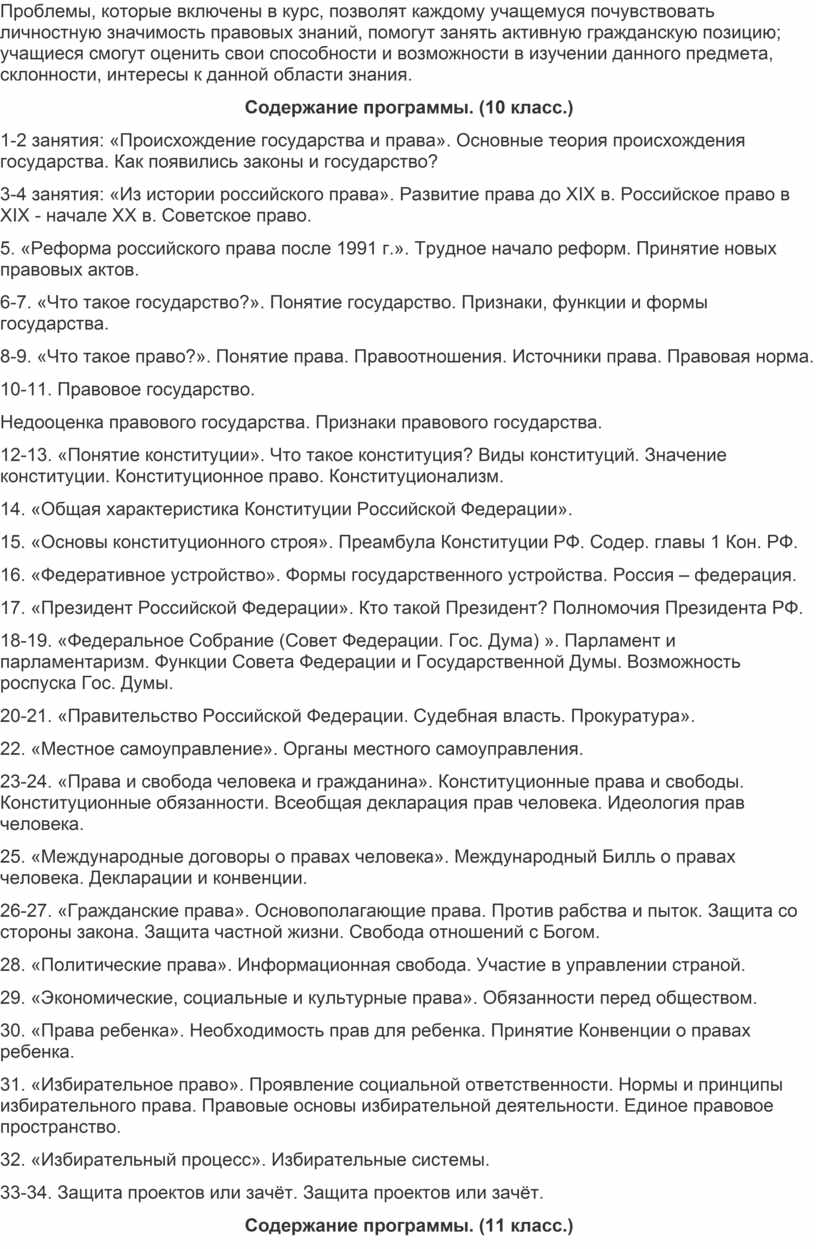 Проблемы, которые включены в курс, позволят каждому учащемуся почувствовать личностную значимость правовых знаний, помогут занять активную гражданскую позицию; учащиеся смогут оценить свои способности и возможности в изучении данного предмета, склонности, интересы к данной области знания.
