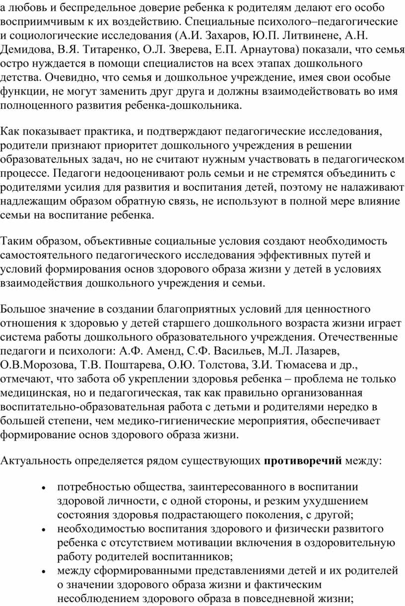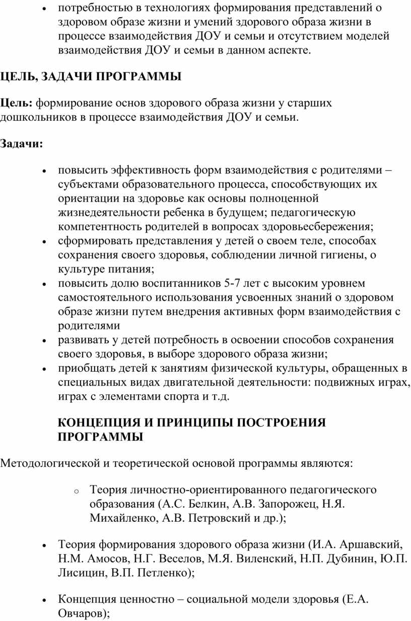 Таким образом, объективные социальные условия создают необходимость самостоятельного педагогического исследования эффективных путей и условий формирования основ здорового образа жизни у детей в условиях взаимодействия дошкольного учреждения и семьи.