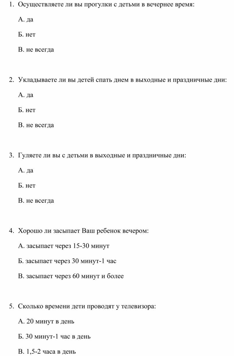 1. Осуществляете ли вы прогулки с детьми в вечернее время: