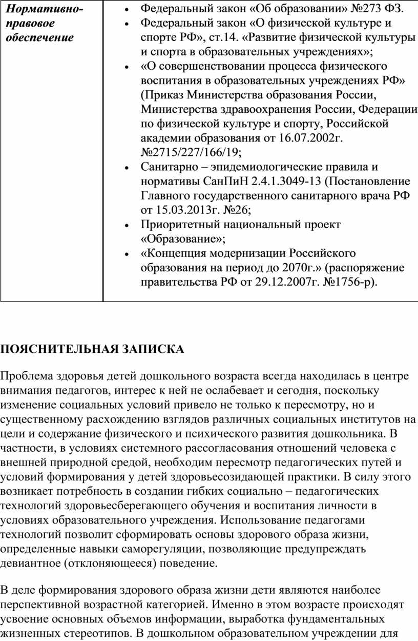 Проблема здоровья детей дошкольного возраста всегда находилась в центре внимания педагогов, интерес к ней не ослабевает и сегодня, поскольку изменение социальных условий привело не только к пересмотру, но и существенному расхождению взглядов различных социальных институтов на цели и содержание физического и психического развития дошкольника. В частности, в условиях системного рассогласования отношений человека с внешней природной средой, необходим пересмотр педагогических путей и условий формирования у детей здоровьесозидающей практики. В силу этого возникает потребность в создании гибких социально – педагогических технологий здоровьесберегающего обучения и воспитания личности в условиях образовательного учреждения. Использование педагогами технологий позволит сформировать основы здорового образа жизни, определенные навыки саморегуляции, позволяющие предупреждать девиантное (отклоняющееся) поведение.