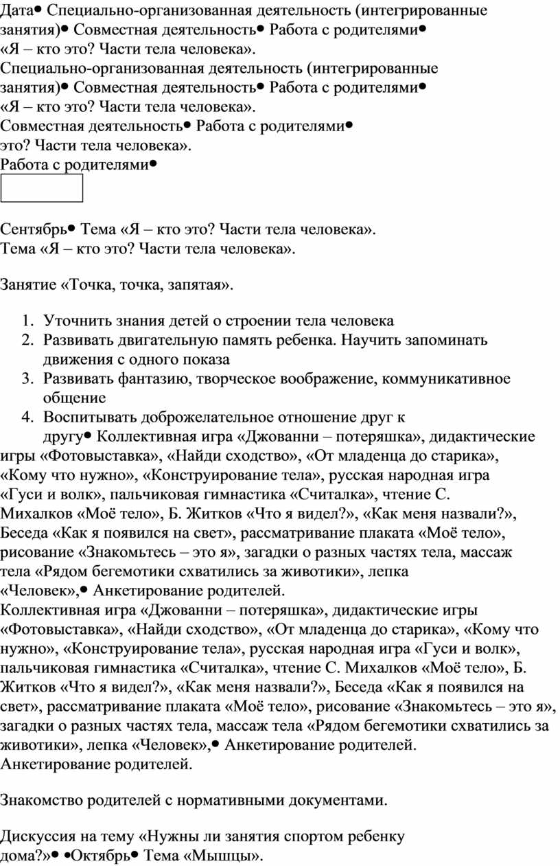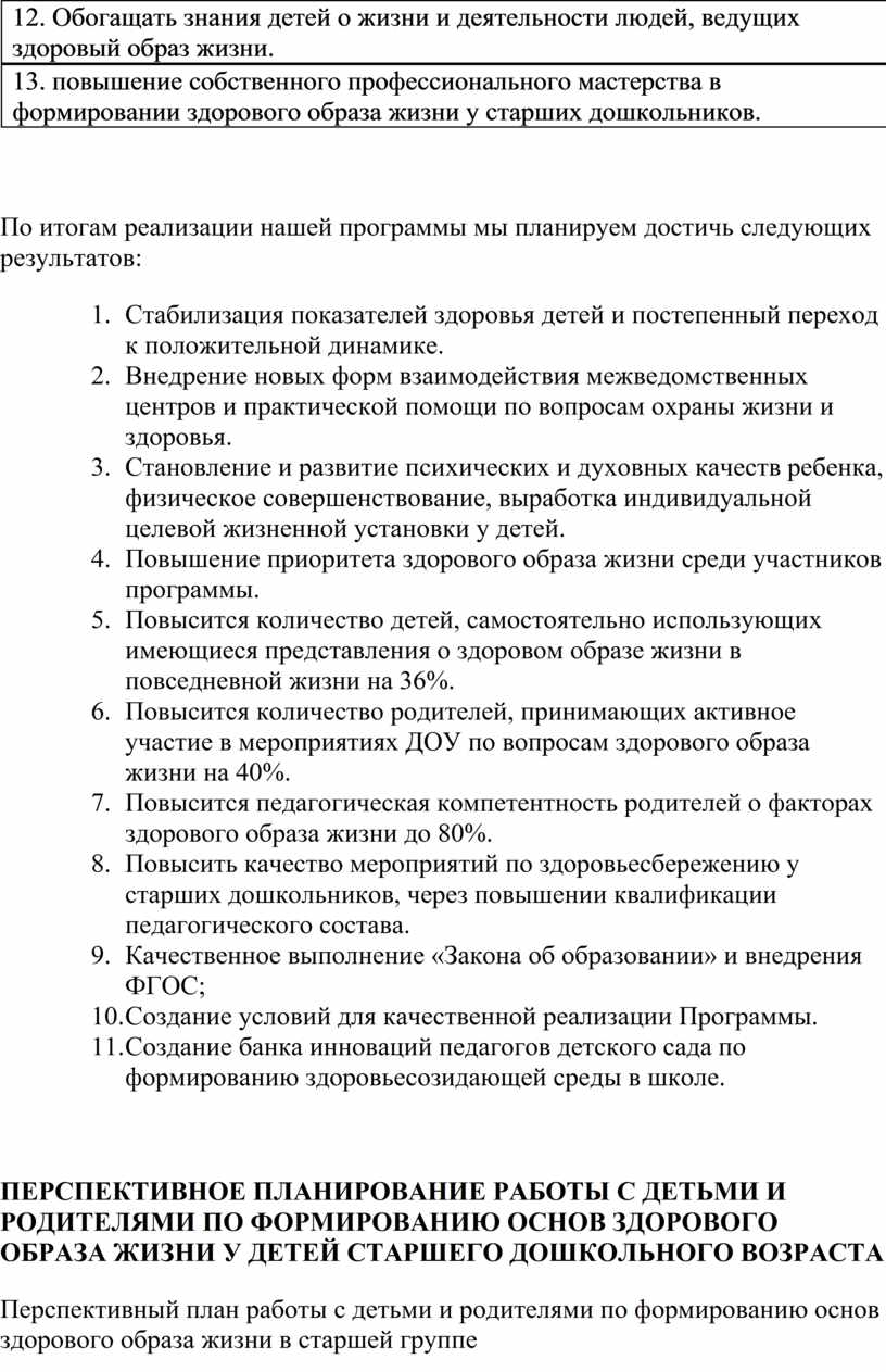 Перспективный план работы с детьми и родителями по формированию основ здорового образа жизни в подготовительной группе по реализации программы «Быть здоровым легко»
