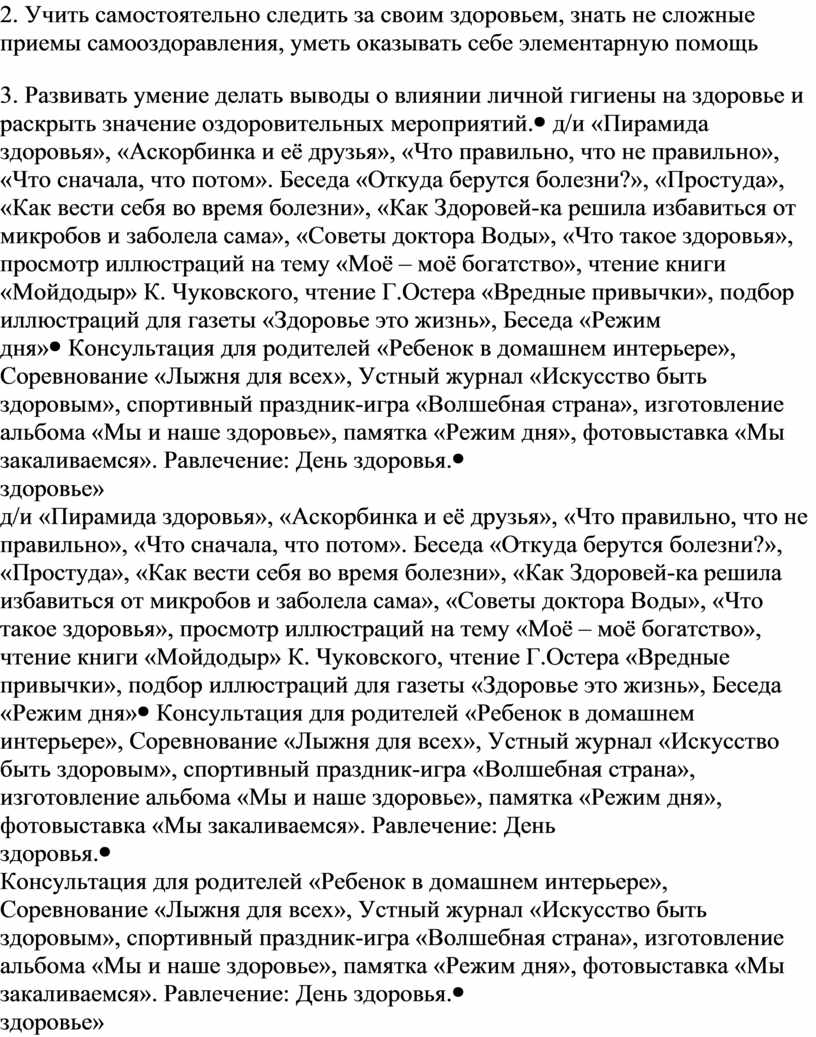 · сформировать представления у детей о своем теле, способах сохранения своего здоровья, соблюдении личной гигиены, о культуре питания;