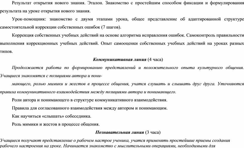 Продолжается работа по формированию представлений и положительного опыта культурного общения. Учащиеся знакомятся с позициями автора и пони-