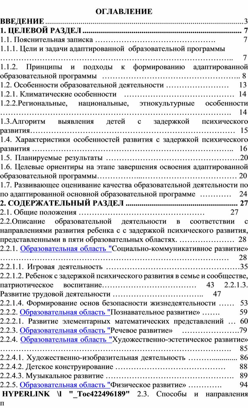 2.6.6. Специальные условия обучения и воспитания детей с задержкой психического развития …………………………………………………117 3. ОРГАНИЗАЦИОННЫЙ РАЗДЕЛ 120