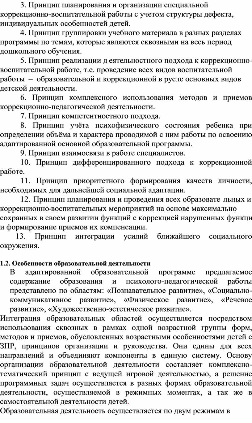 1.1.2. Принципы и подходы к формированию адаптированной образовательной программы …………………………………………….. 8