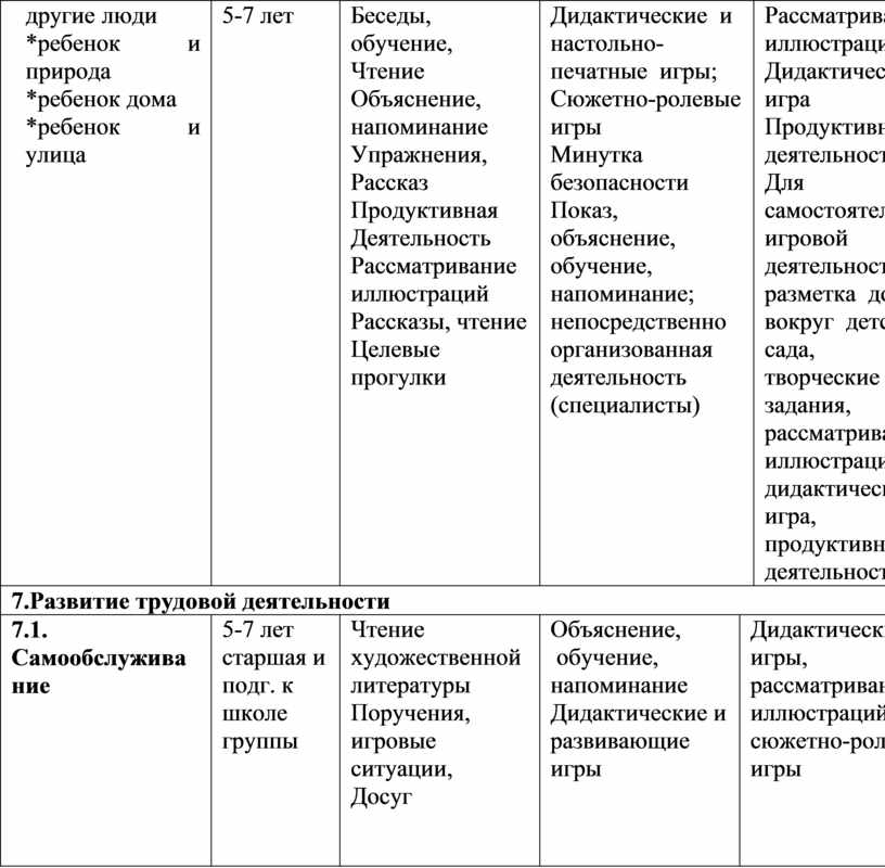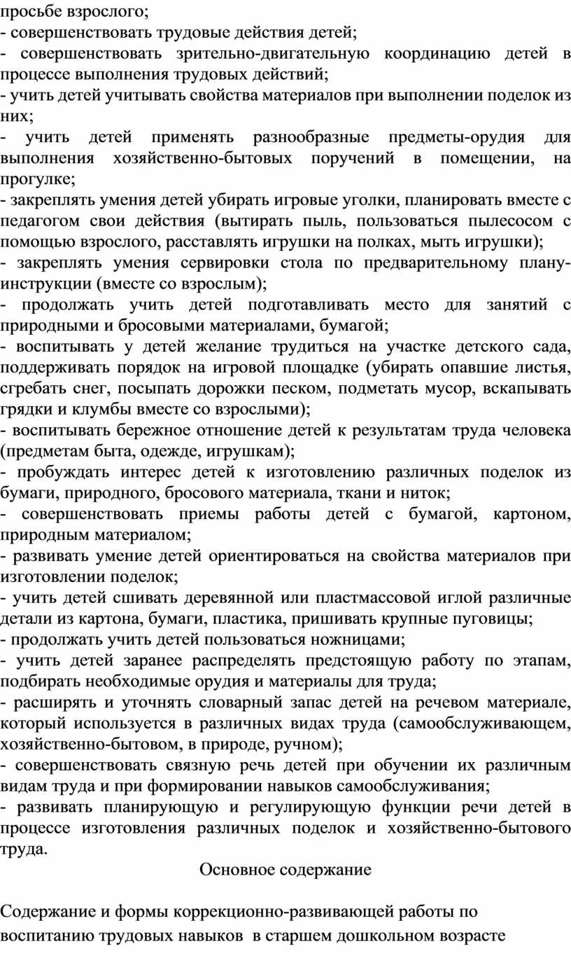 – самообслуживание и элементарный бытовой труд (в помещении и на улице),