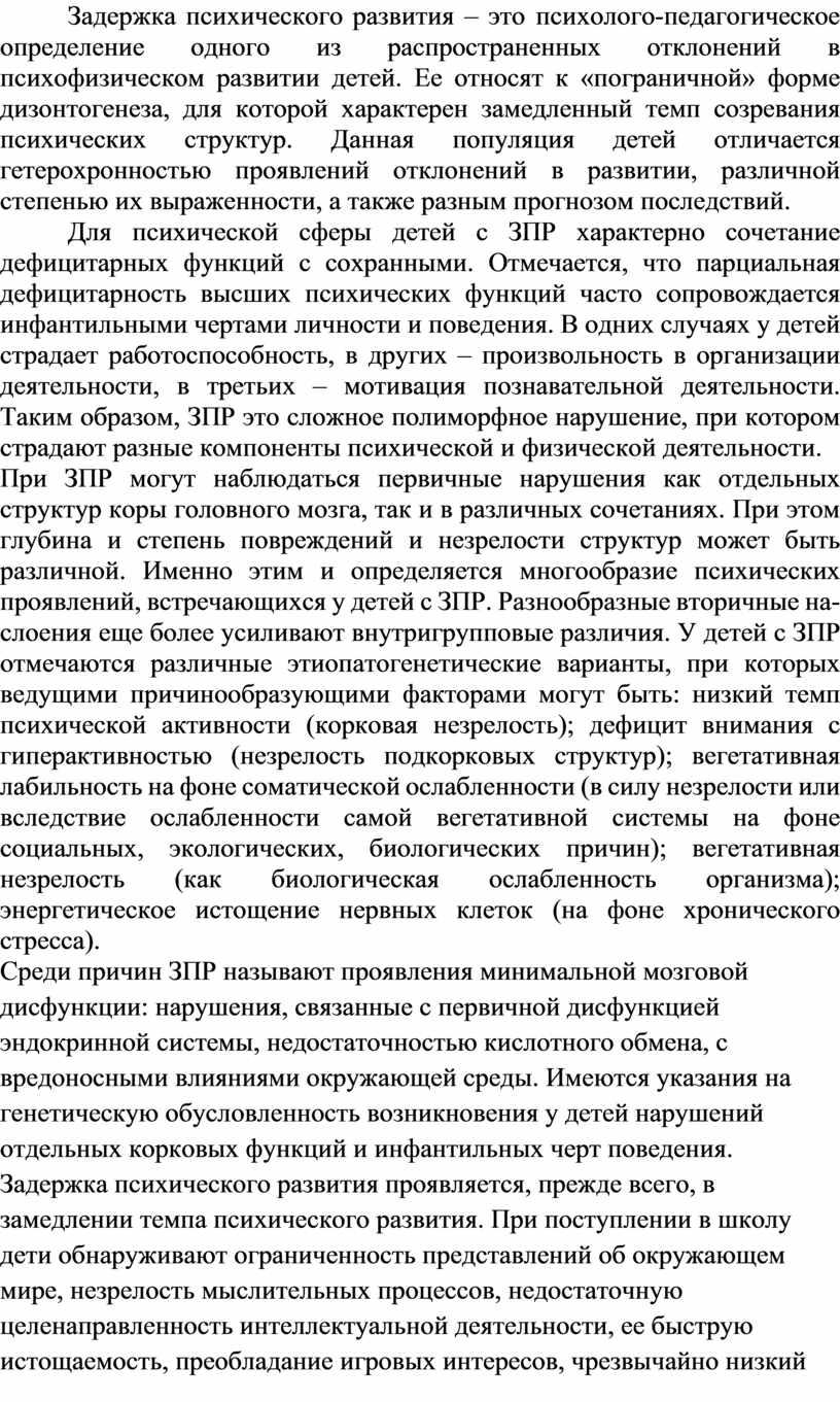 – тенденция к «школяризации» дошкольного образования, к форсированию интеллектуального развития детей в форме искусственной акселерации за счет вытеснения типично детских видов деятельности и замещения их псевдоучебной деятельностью приводит к снижению общей активности детей с задержкой психического развития – игровой, познавательной, исследовательской, коммуникативной, что ведет к слабой сформированности у детей предпосылок учебной деятельности, а следовательно, к снижению их мотивации к учению на следующих уровнях образования;