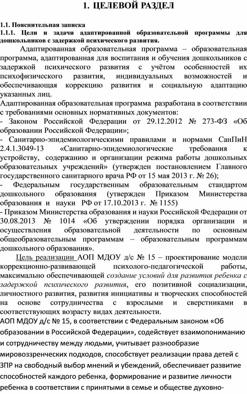 1. ЦЕЛЕВОЙ РАЗДЕЛ