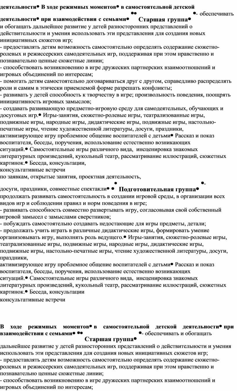 – особенностей образовательной деятельности разных видов и культурных практик,