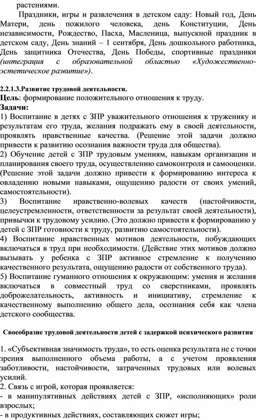 – формирование общей культуры личности детей с ЗПР, развитие их социальных, нравственных, эстетических, интеллектуальных, физических качеств, инициативности, самостоятельности и ответственности ребенка, формирование предпосылок учебной деятельности;