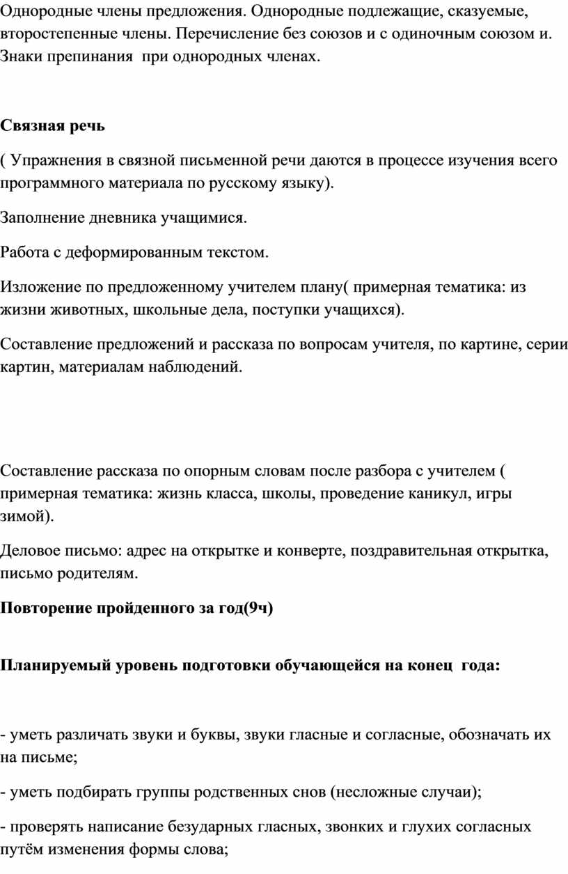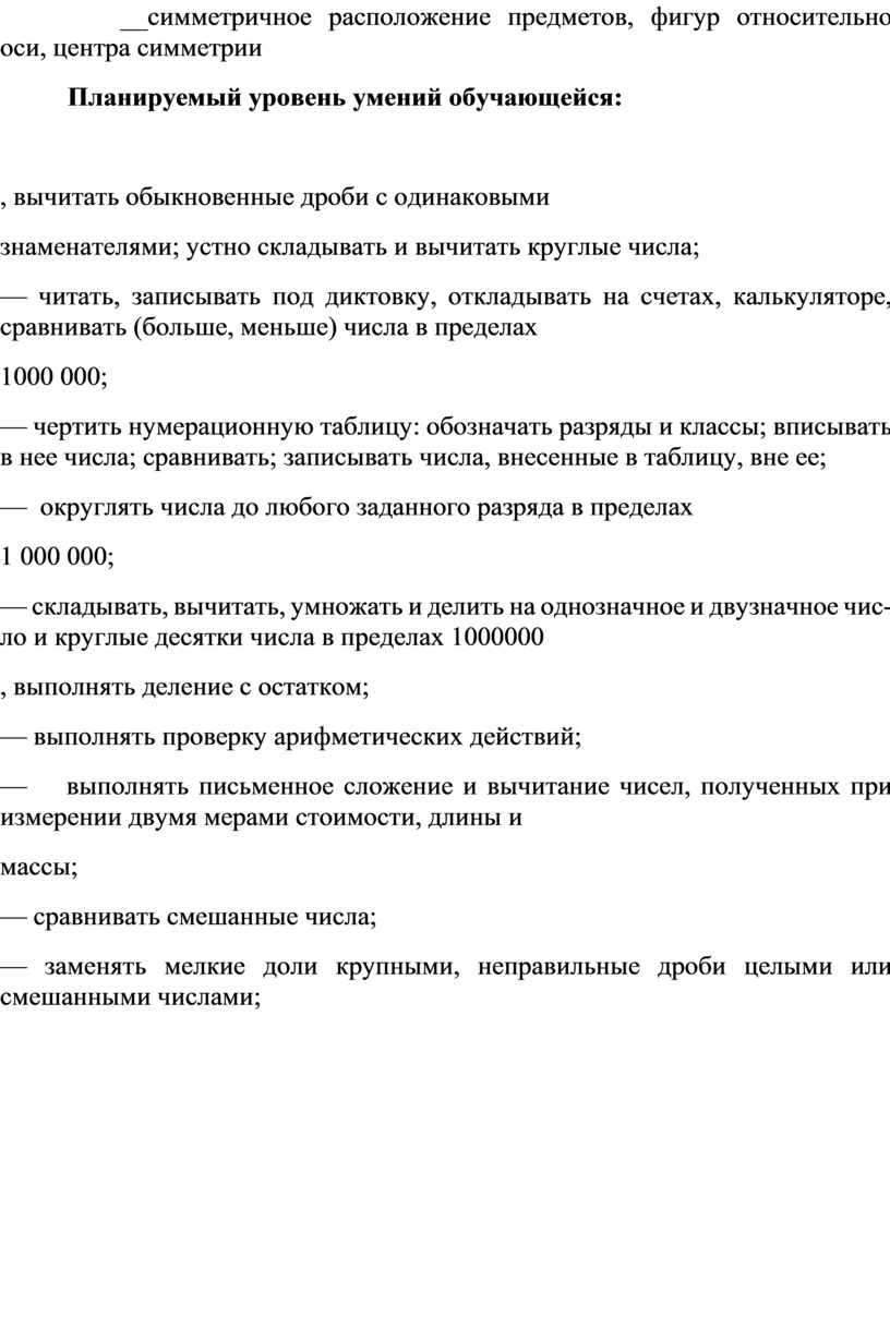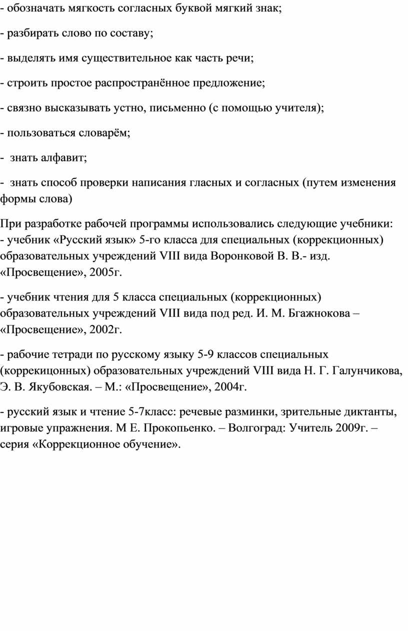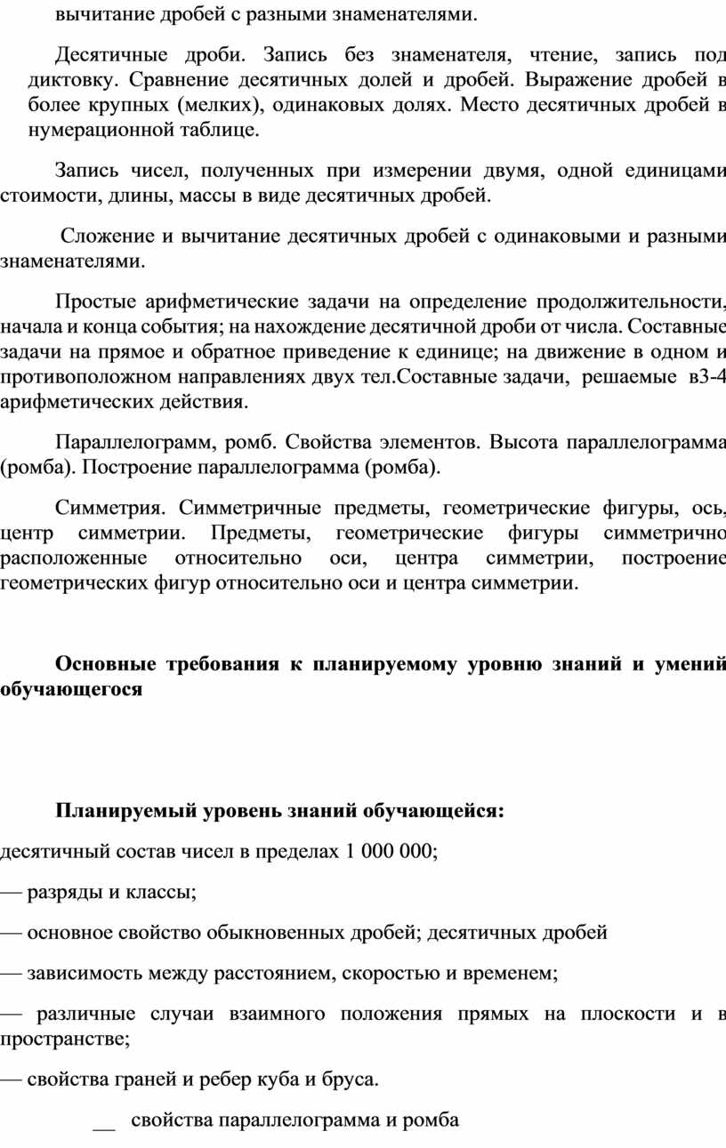 Ученица должна получить достаточно прочные навыки письма на основе изучения элементарного курса грамматики, научиться правильно и последовательно излагать свои мысли в устной и письменной форме, выполнять вычисления в пределах 100000, владеть географическими и биологическими терминами, ориентироваться в исторических датах и событиях, быть социально адаптированным в плане общего развития и сформированности нравственных качеств.