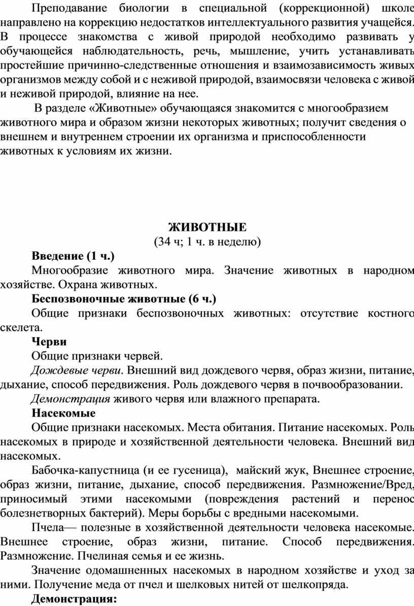 Учебно-познавательный интерес не устойчив, круг представлений и понятий биологического характера сформирован . Все разделы усваиваются с помощью учителя.. Например «Беспозвоночные животные" и другие .Трудности испытывает при изучении темы «Млекопитающие». Затрудняется в установлении причинно-следственных связей в теме «Птицы», «Земноводные». При помощи учителя узнает строение и общие биологические особенности животных; некоторые биологические особенности, а также приемы ухода за сельскохозяйственными животными. В тексте учебника ориентируется с помощью учителя, улавливает смысл прочитанного, выделяет с помощью учителя главную мысль. умеет определять цель поставленной работы и последовательность ее выполнения. На практике самостоятельно не применяет полученные практические навыки. Учебный материал пересказывает с помощью учителя. Биологические термины усваивает с трудом .
