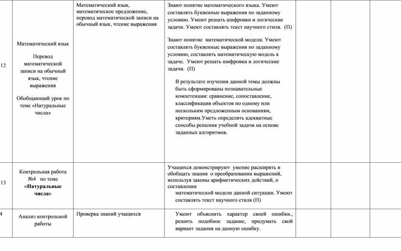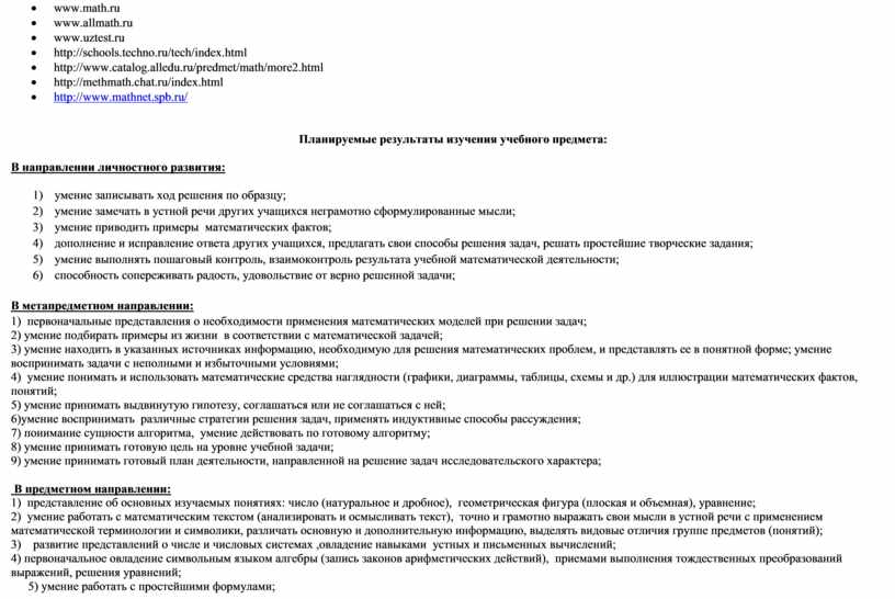 По окончании курса математики в 5 классе у учащихся должны быть сформированы следующие результаты: