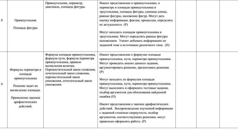 8) умение измерять длины отрезков, величины углов, находить периметр любой плоской фигуры, площадь квадрата и прямоугольника, объем куба и прямоугольного параллелепипеда;