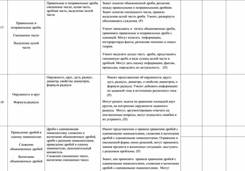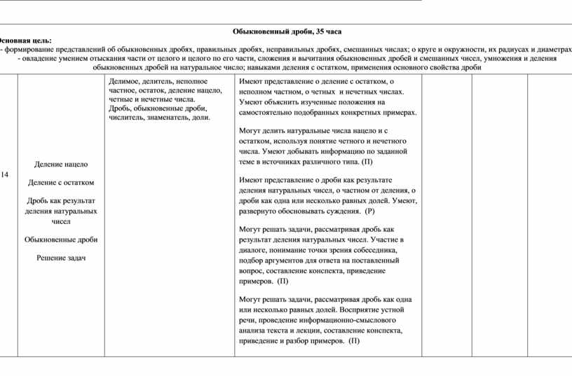 2. «Обыкновенные дроби» продолжает формирование представлений об обыкновенных дробях, правильных дробях, о неправильных дробях, о смешанных числах, о круге и окружности, о их радиусах и диаметрах.Закрепляет и развивает навыки отыскания части от целого и целого по его части, сложения и вычитания обыкновенных дробей и смешанных чисел, умножением и делением обыкновенных дробей на натуральное число, применение основного свойства дроби для сокращения дробей и приведения к новому знаменателю.