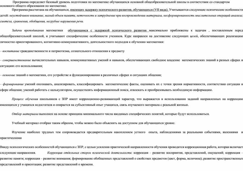 Задачи преподавания математики обучающимся с задержкой психического развития максимально приближены к задачам , поставленным перед общеобразовательной школой, и учитывают специфические особенности учеников. Курс направлен на достижение следующих целей, обеспечивающих реализацию личностно ориентированного, когнитивно-коммуникативного, деятельностного подходов к обучению математики: