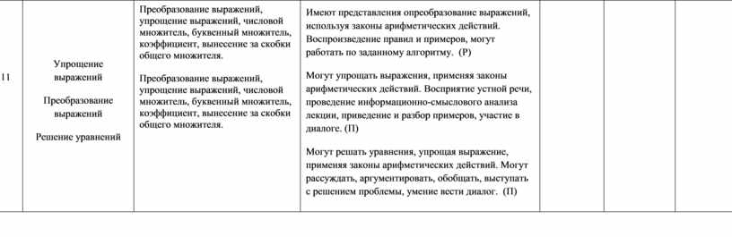 4) первоначальное овладение символьным языком алгебры (запись законов