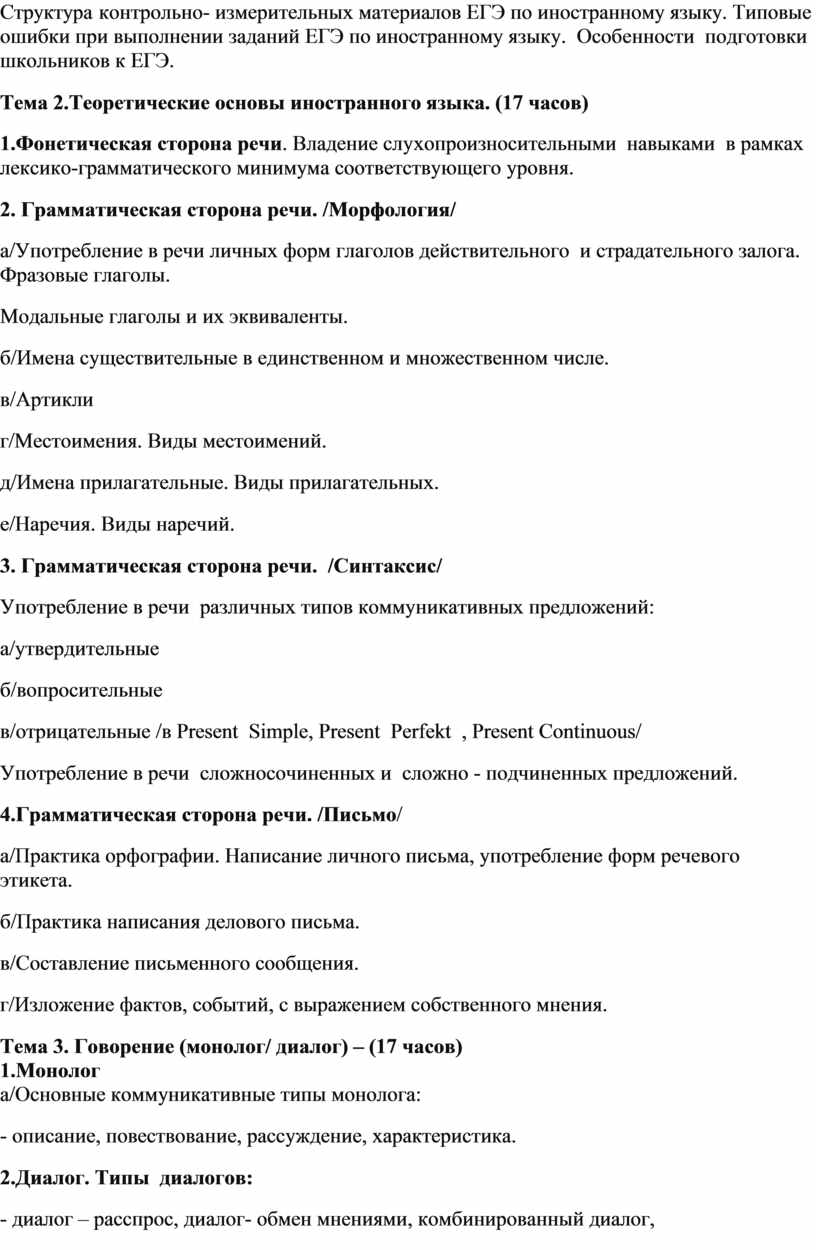Структура контрольно- измерительных материалов ЕГЭ по иностранному языку. Типовые ошибки при выполнении заданий ЕГЭ по иностранному языку. Особенности подготовки школьников к ЕГЭ.