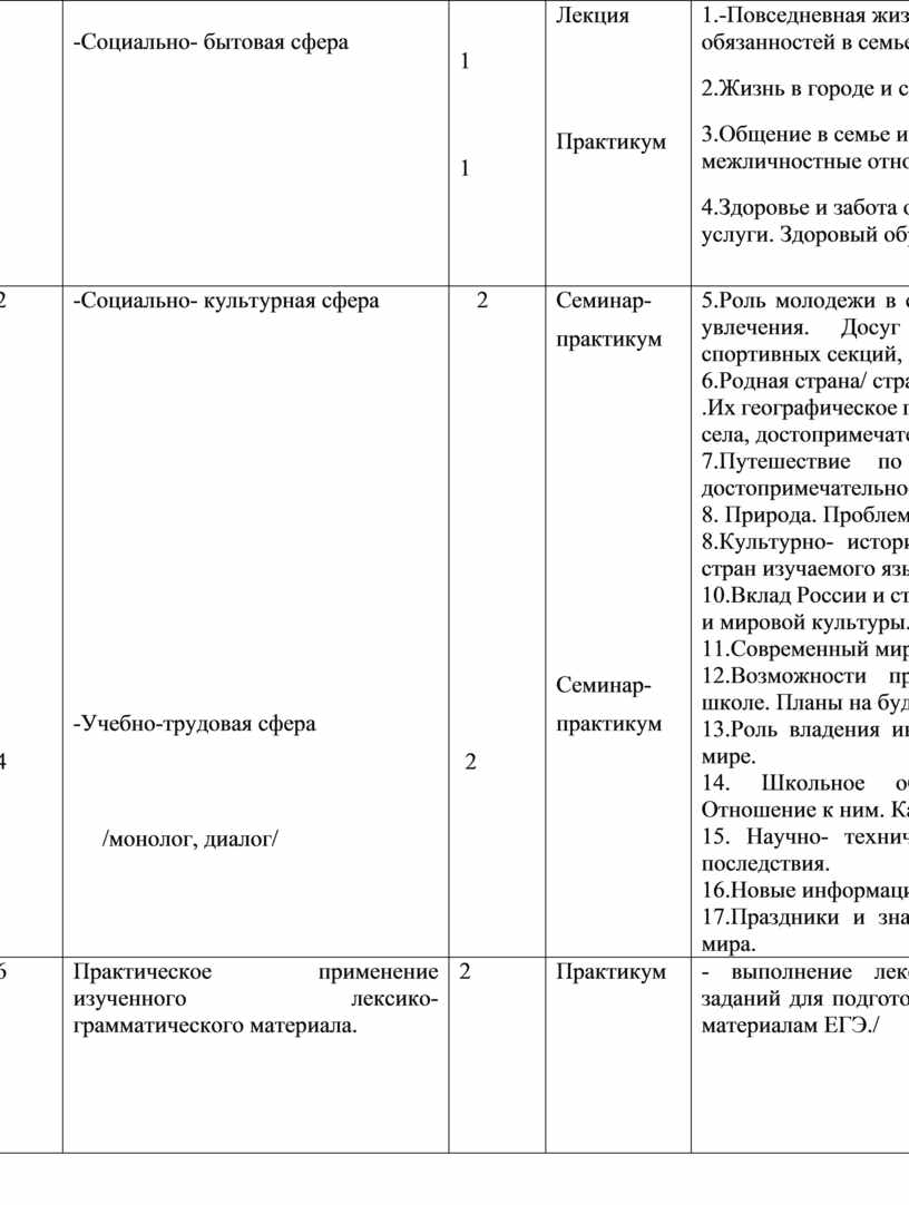 1.-Повседневная жизнь и быт, распределение домашних обязанностей в семье. Покупки. 2.Жизнь в городе и селе. Проблемы города и села. 3.Общение в семье и школе, семейные традиции, межличностные отношения с друзьями и знакомыми. 4.Здоровье и забота о нем. Самочувствие, медицинские услуги. Здоровый образ жизни. |