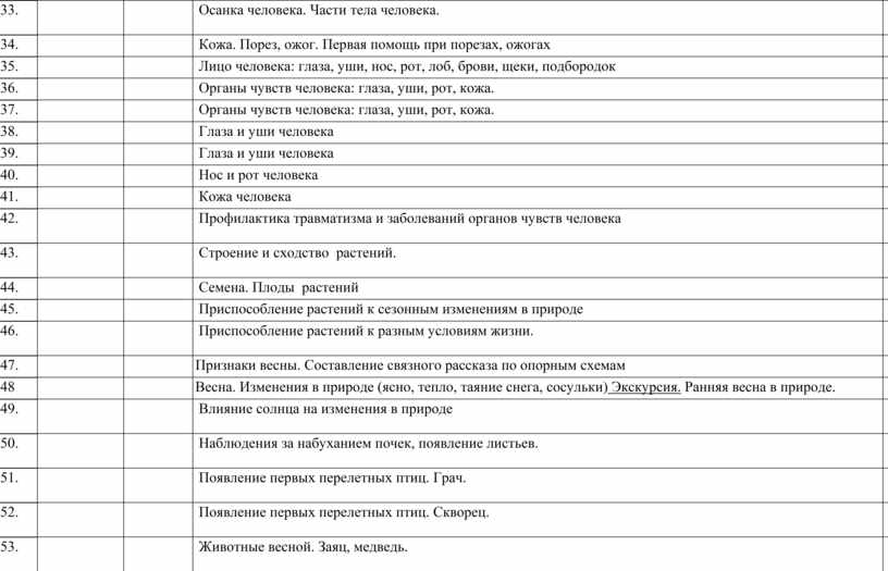 - уметь называть и показывать органы чувств человека.