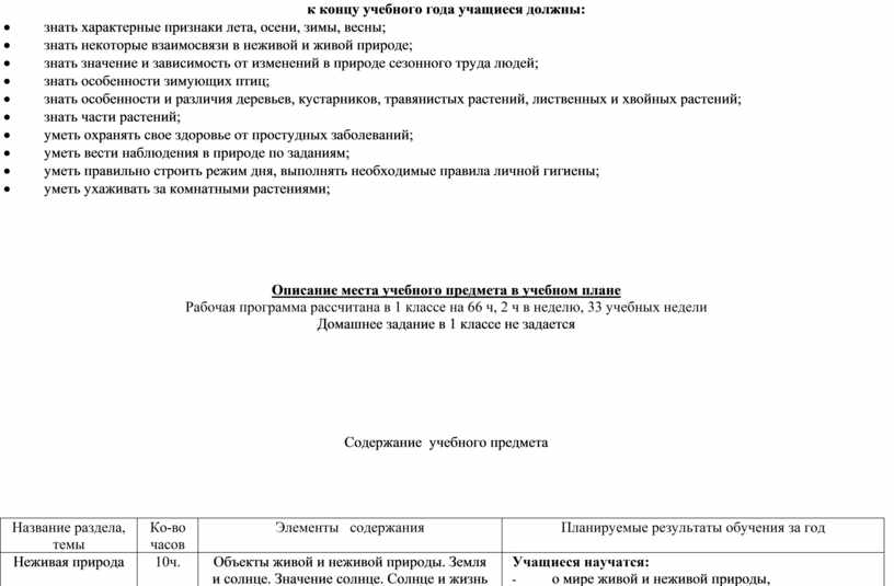 Рабочая программа рассчитана в 1 классе на 66 ч, 2 ч в неделю, 33 учебных недели
