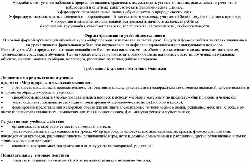 предмета «Мир природы и человека» являются: