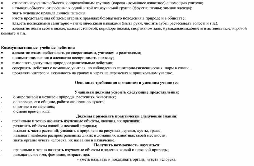 Основные требования к знаниям и умениям учащихся