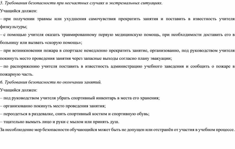 5. Требования безопасности при несчастных случаях и экстремальных ситуациях.