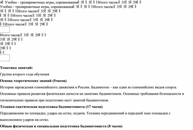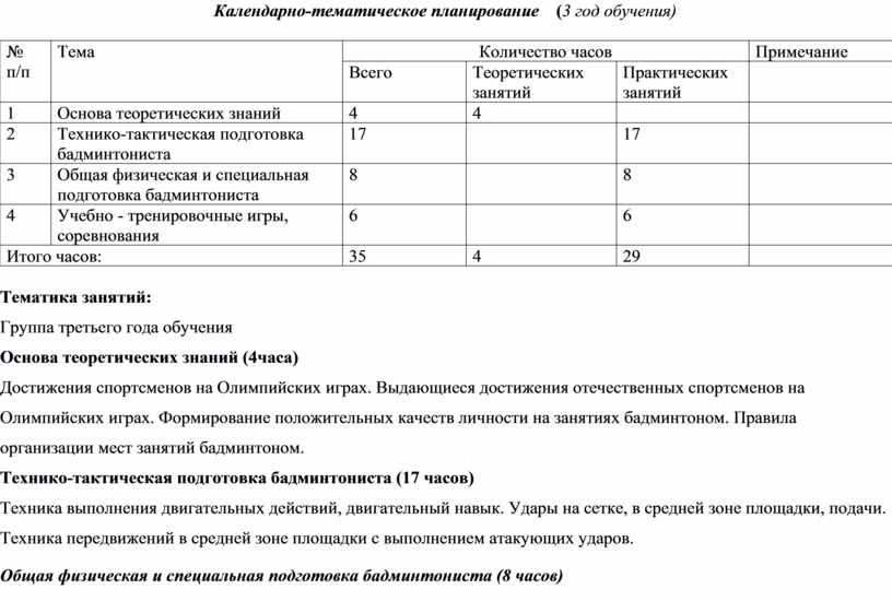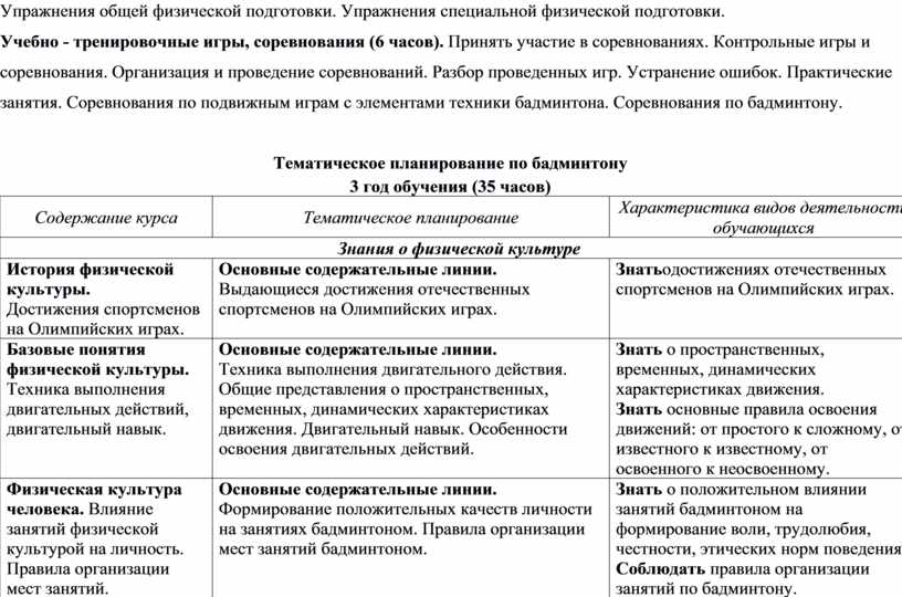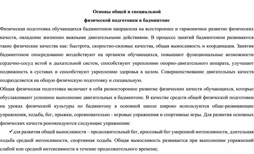 3. общая физическая подготовка и специальная подготовка бадминтониста.