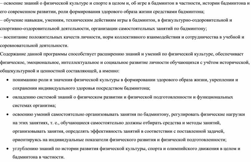 В рамках реализации этой цели программа по бадминтону для обучающихся основной школы будет способствовать решению следующих задач: