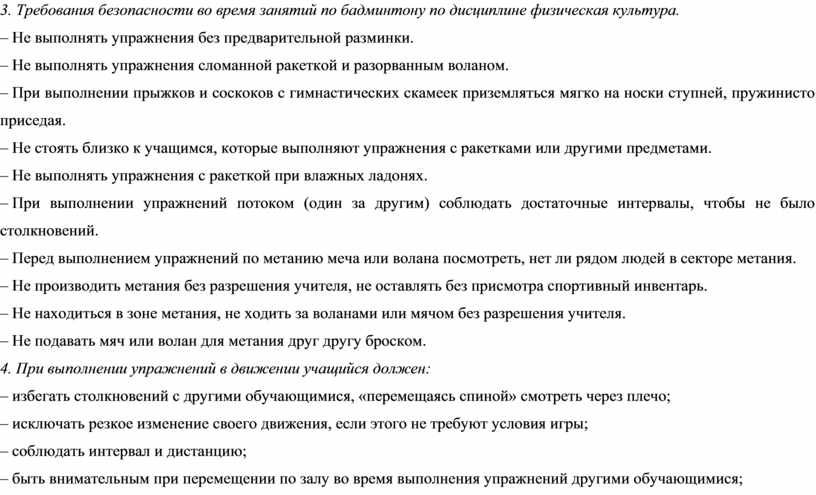 3. Требования безопасности во время занятий по бадминтону по дисциплине физическая культура.