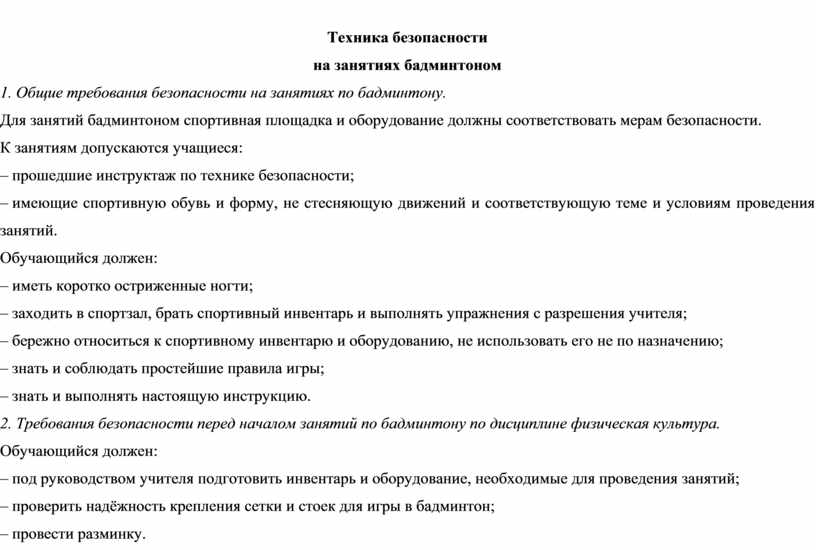 2. Требования безопасности перед началом занятий по бадминтону по дисциплине физическая культура.