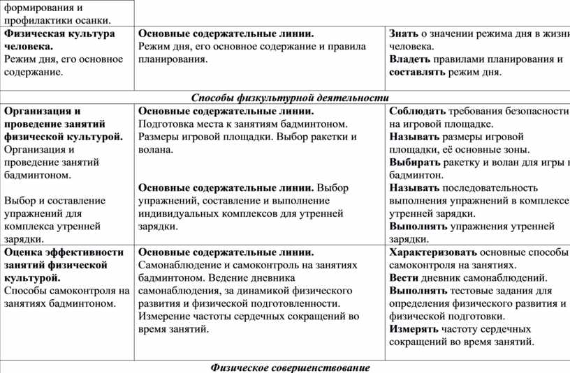 Основные содержательные линии. Основные показатели физического развития. Осанка как показатель физического развития. Факторы, влияющие на форму осанки. Средства формирования и профилактика нарушения осанки. |