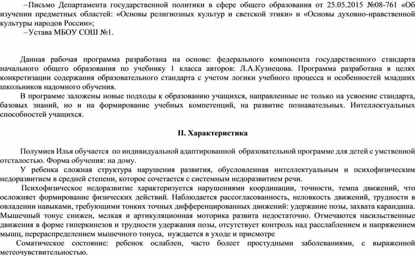 Полумиев Илья обучается по индивидуальной адаптированной образовательной программе для детей с умственной отсталостью. Форма обучения: на дому.