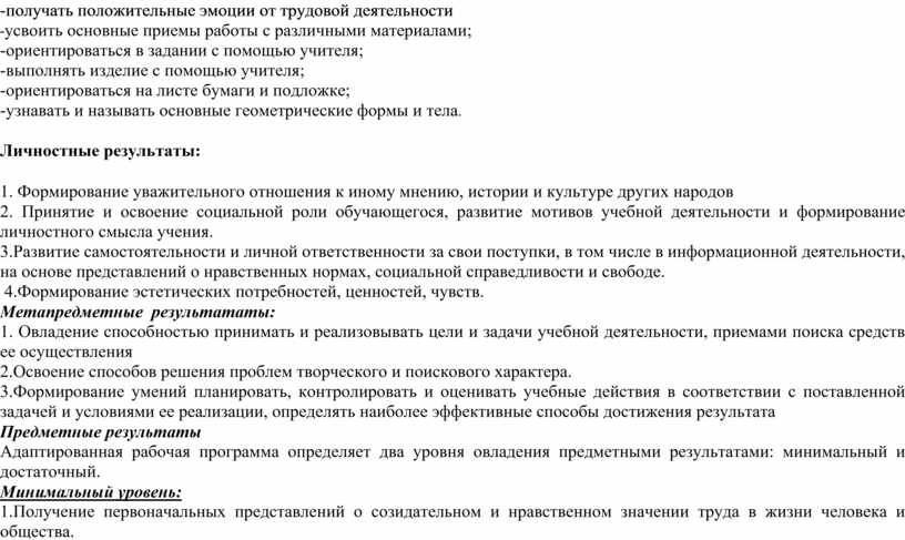 - Развитие познавательных мотивов, интересов, инициативности, любознательности на основе связи трудового и технологического образования с жизненным опытом и системой ценностей ребенка; а также на основе мотивации успеха, готовности к действиям в новых условиях в нестандартных ситуациях; Особое внимание в программе отводится практическим работам, при выполнении которых учащиеся: