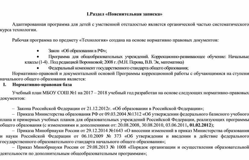 Адаптированная программа для детей с умственной отсталостью является органической частью систематического курса технологии.