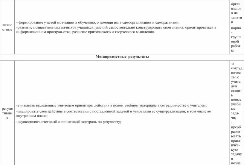 - формирование у детей мот-вации к обучению, о помощи им в самоорганизации и саморазвитии; -развитие познавательных на-выков учащихся, умений самостоятельно конструировать свои знания, ориентироваться в информационном простран-стве, развитие критического и творческого мышления. |