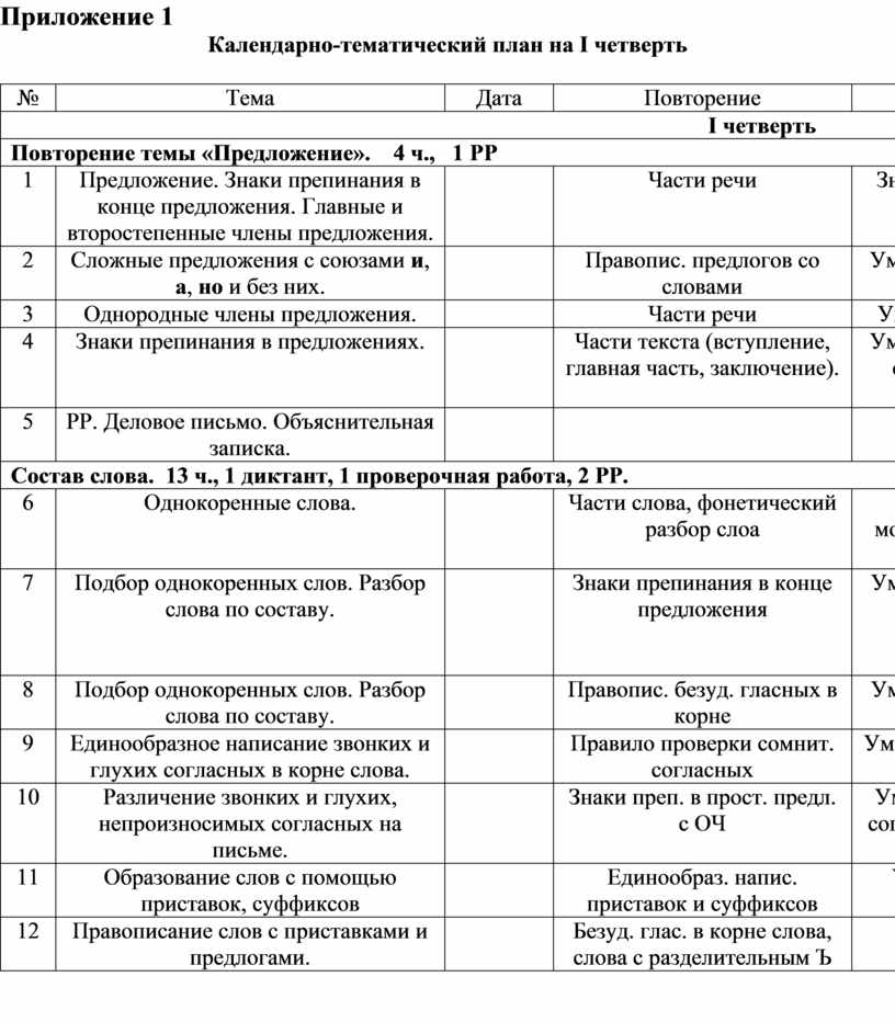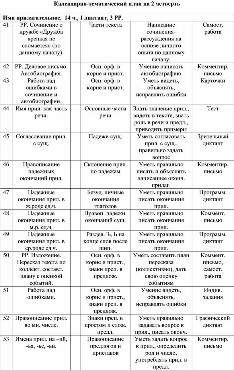 Календарно-тематический план на 2 четверть