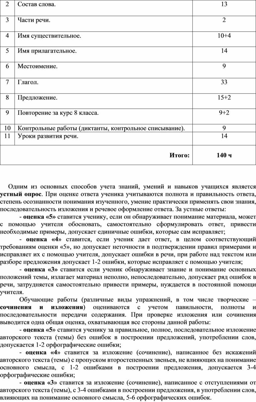 Части речи (2 часа). Повторение изученного об основных частях речи в 5-7 классах – имени существительном, имени прилагательном, глаголе, местоимении, служебных частях речи. Грамматические признаки частей речи, их значение, роль в речи и предложении. Уметь отличать части речи друг от друга. Обучение морфологическому разбору основных частей речи.