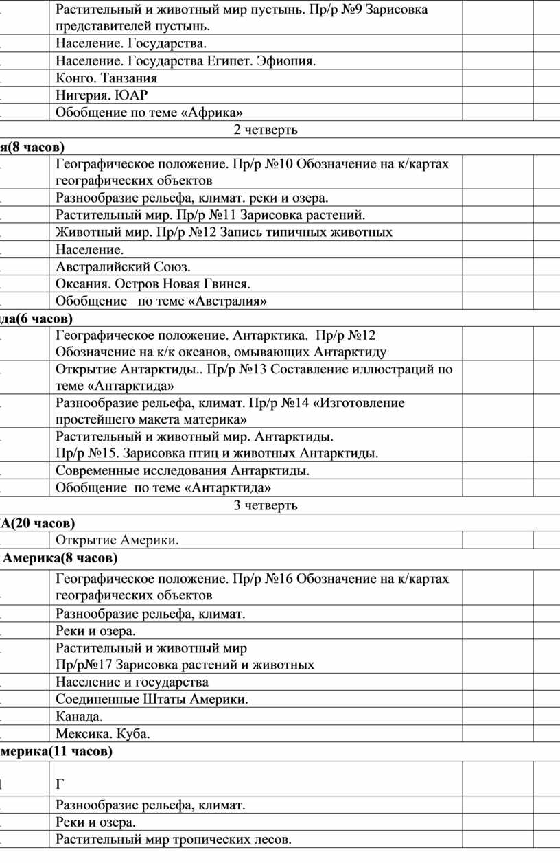 Географическое положение, очертания берегов, острова и полуострова. Разнообразие рельефа, климата и природных условий. Растения тропических лесов. Животные тропических лесов. Растительный мир саванн. Животный мир саванн. Растительный и животный мир пустынь. Население. Жизнь и быт народов. Государства, их столицы (Египет, Эфиопия, ЮАР — или другие по выбору учителя). Обобщающий урок.