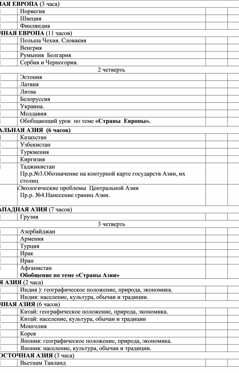 ЦЕНТРАЛЬНАЯ АЗИЯ (6 часов) |