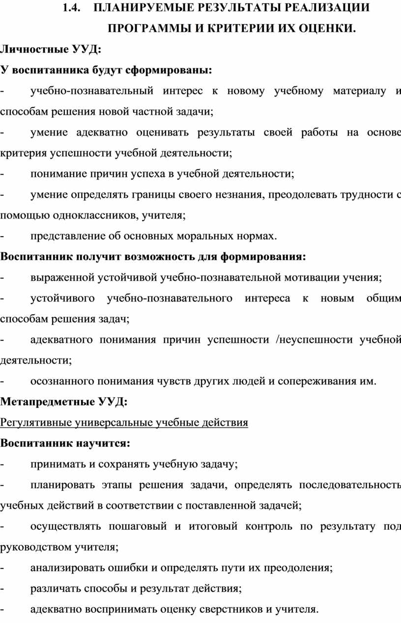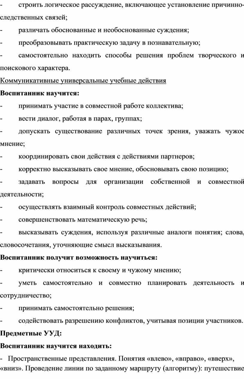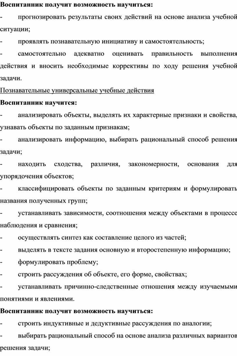 · освоение воспитанниками универсальных учебных действий (личностных, познавательных, регулятивных и коммуникативных), обеспечивающих овладение ключевыми компетентностями.
