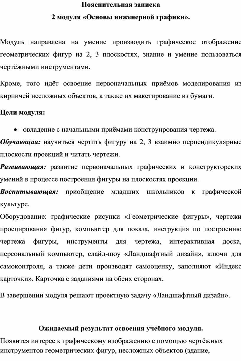 Творческая деятельность предполагает самостоятельную или почти самостоятельную графическую, конструкторскую работу учащихся.