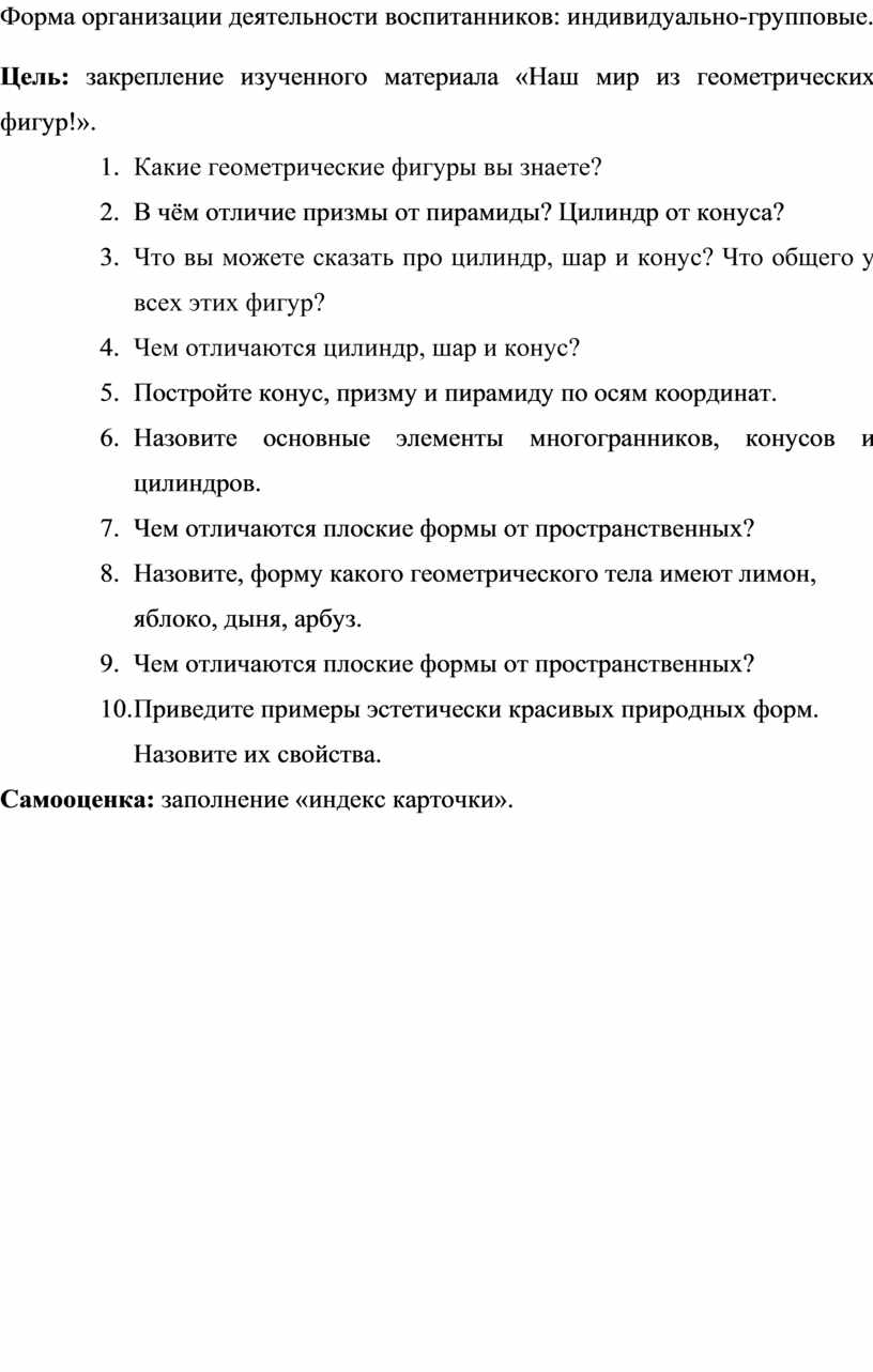 Форма организации деятельности воспитанников на занятии: индивидуально-групповая.